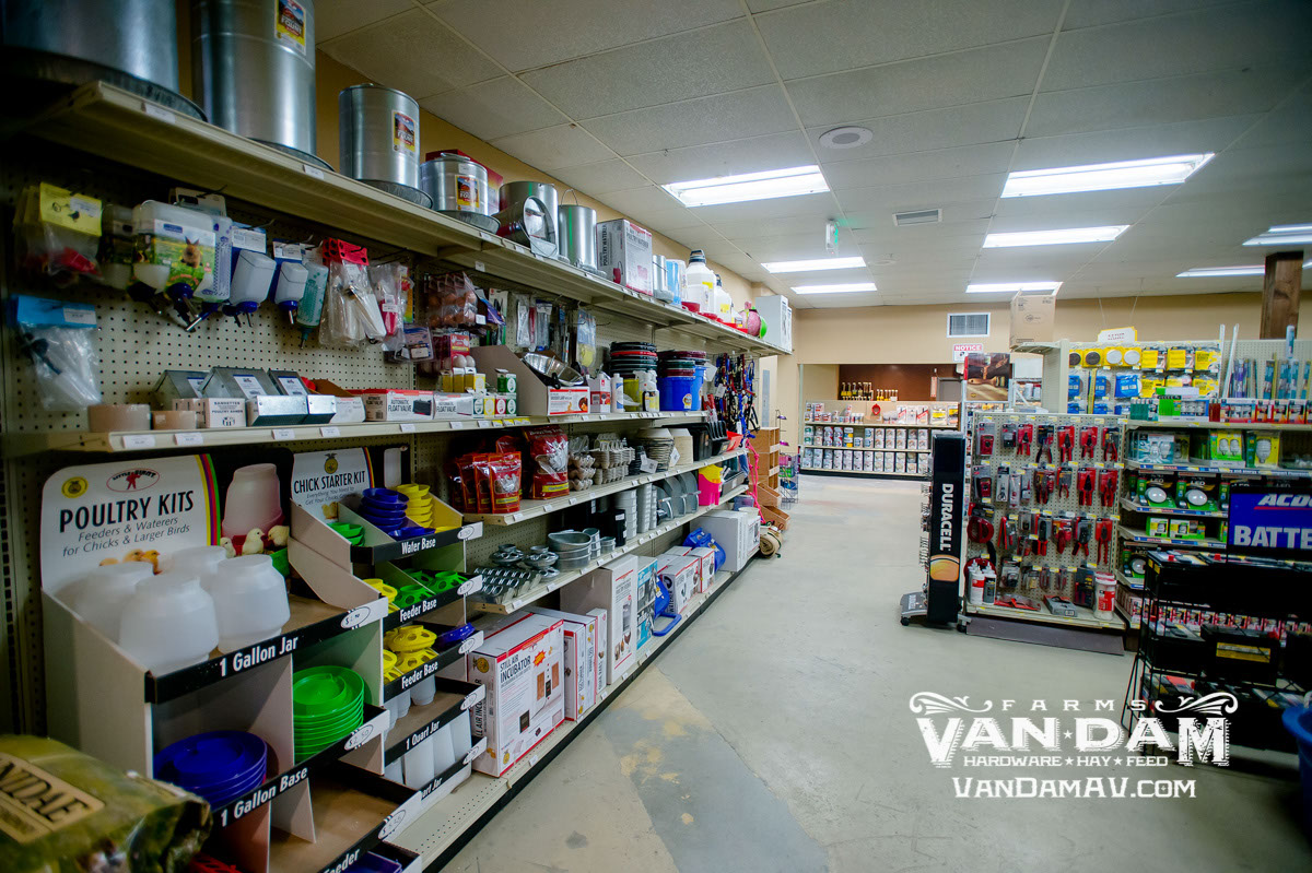 You may not know this, but Van Dam Farms has a full selection of hardware products at each location. Paint, electric, housewares, plumbing, and garden/lawn items are available with helpful staff along the way.